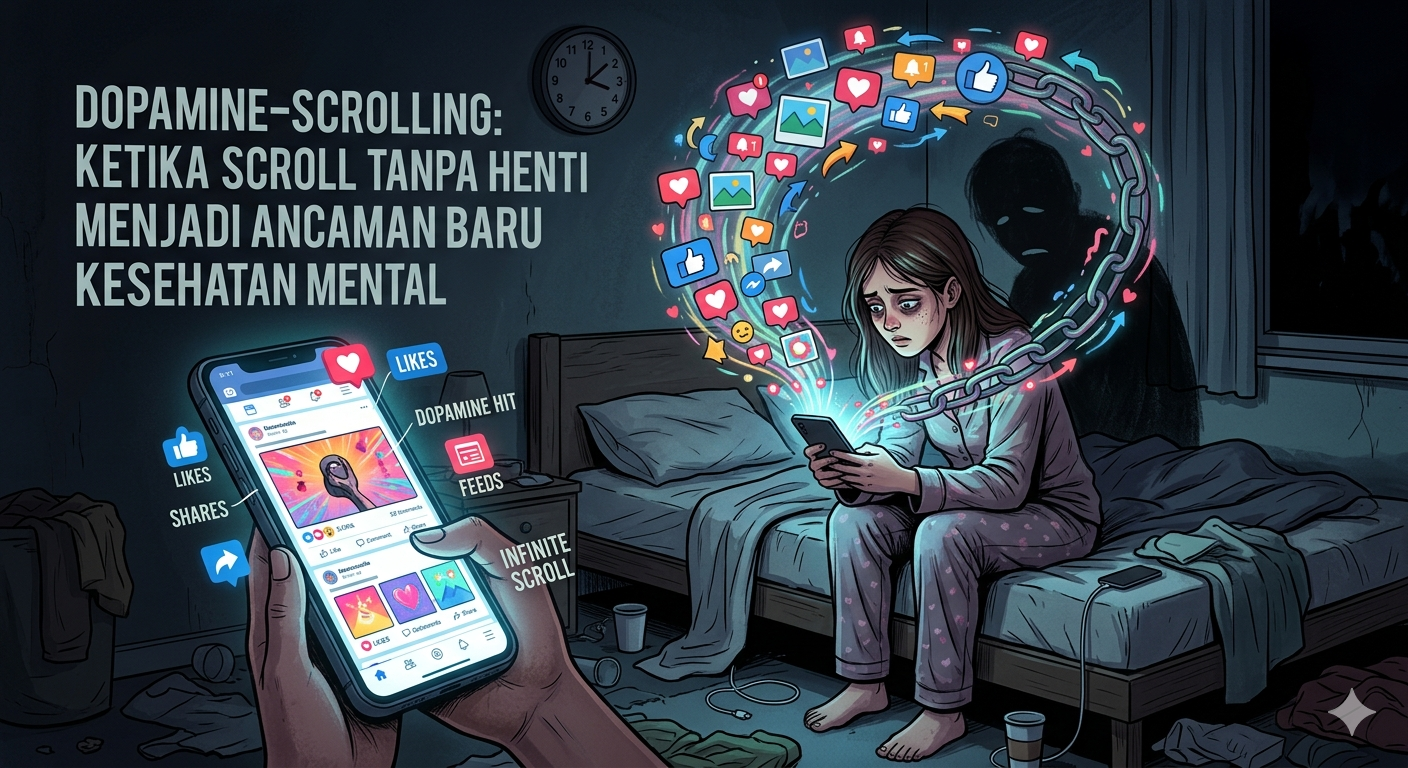 Di era digital yang serba cepat, aktivitas sederhana seperti menggulir layar ponsel kini bukan lagi sekadar kebiasaan biasa. Ia telah berkembang menjadi fenomena yang lebih kompleks, bahkan berpotensi menjadi masalah kesehatan publik. Fenomena ini dikenal sebagai dopamine-scrolling—perilaku menggulir media sosial secara terus-menerus untuk mencari konten yang menghibur dan memberi sensasi menyenangkan.