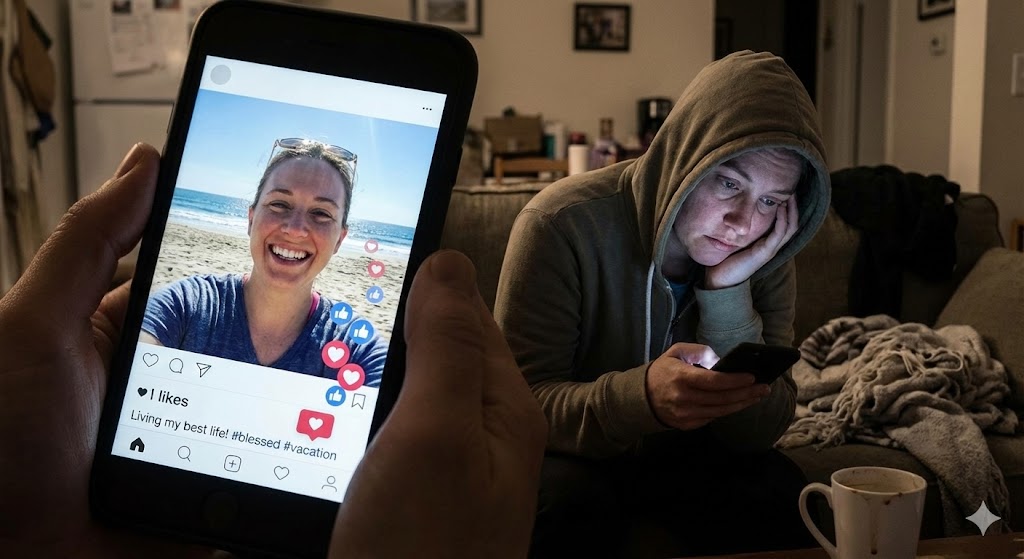 Media sosial hari ini dipenuhi senyum. Liburan yang tampak sempurna, pencapaian yang dibungkus caption motivasi, serta kehidupan yang terlihat selalu baik-baik saja. Scroll demi scroll, kita disuguhi potret kebahagiaan seolah hidup semua orang sedang berada di titik terbaiknya. Tapi benarkah demikian?