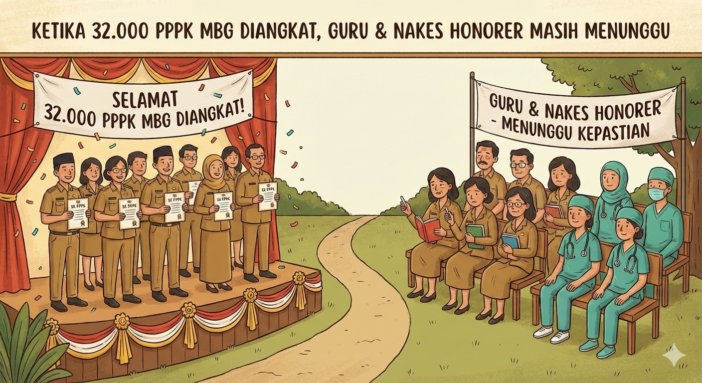 Jakarta – Keputusan pemerintah mengangkat sekitar 32.000 PPPK untuk mendukung Program Makan Bergizi Gratis (MBG) menandai keseriusan negara dalam menjawab persoalan gizi dan kualitas sumber daya manusia. Namun, di saat yang sama, kebijakan ini memunculkan pertanyaan yang tidak bisa dihindari: mengapa negara begitu cepat menghadirkan kepastian bagi program baru, sementara guru dan tenaga kesehatan honorer yang telah puluhan tahun mengabdi masih terus menunggu kejelasan nasib?