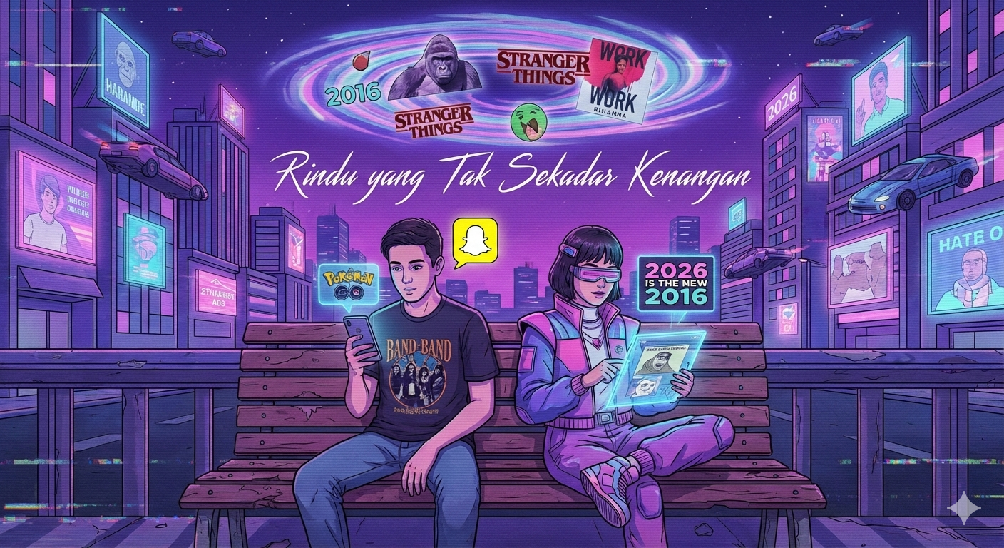 Ungkapan “2026 is the new 2016” yang ramai di media sosial bukan sekadar permainan kata atau tren nostalgia musiman. Ia adalah penanda kegelisahan kolektif. Tahun 2016 diingat sebagai masa yang terasa lebih sederhana: media sosial belum seintens sekarang, algoritma belum terlalu agresif, dunia belum sepenuhnya dikepung kecemasan global, dan hidup—setidaknya dalam ingatan—terasa lebih ringan.