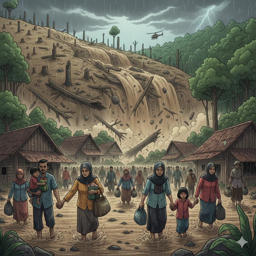Dalam dua dekade terakhir, Sumatera telah kehilangan tutupan hutan dalam jumlah mencengangkan. Pohon-pohon besar yang dulu menjaga tanah tetap kokoh kini berganti menjadi lahan terbuka, perkebunan komersial, atau area yang dibiarkan kritis. Ketika hutan hilang, kemampuan tanah menyerap air hujan ikut menghilang. Air tak lagi meresap perlahan, melainkan meluncur seperti gelombang liar yang membawa murka. Para ahli menyebutnya bukan sekadar bencana alam, tetapi bencana ekologis akibat ulah manusia sendiri.